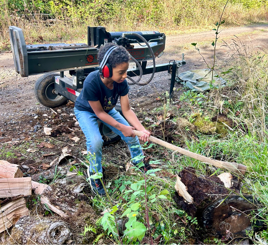 Ostensibly, the boys have come to help. Yesterday we fired up the hydraulic wood splitter and began breaking up large rounds of a Douglas-fir that once stood between the driveway and the orchard. Although I was rarely left alone at the task, they circled in and out of the splitting in an erratic choreography driven by youthful attention deficit. I didn’t mind. Despite the unending To-Do lists that constantly surround this place and clutter my thoughts, when my grandsons make the trip there is a single imperative—that they love being here and love coming with me.